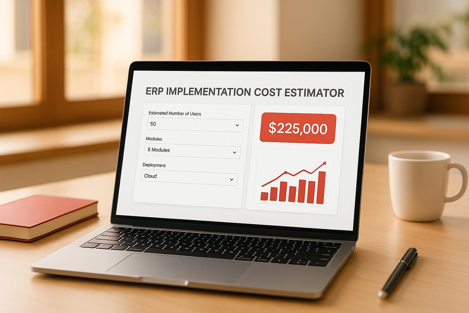 Estimate your ERP implementation cost in minutes! Input company size, modules, and deployment type for a detailed breakdown. Try it free now!
